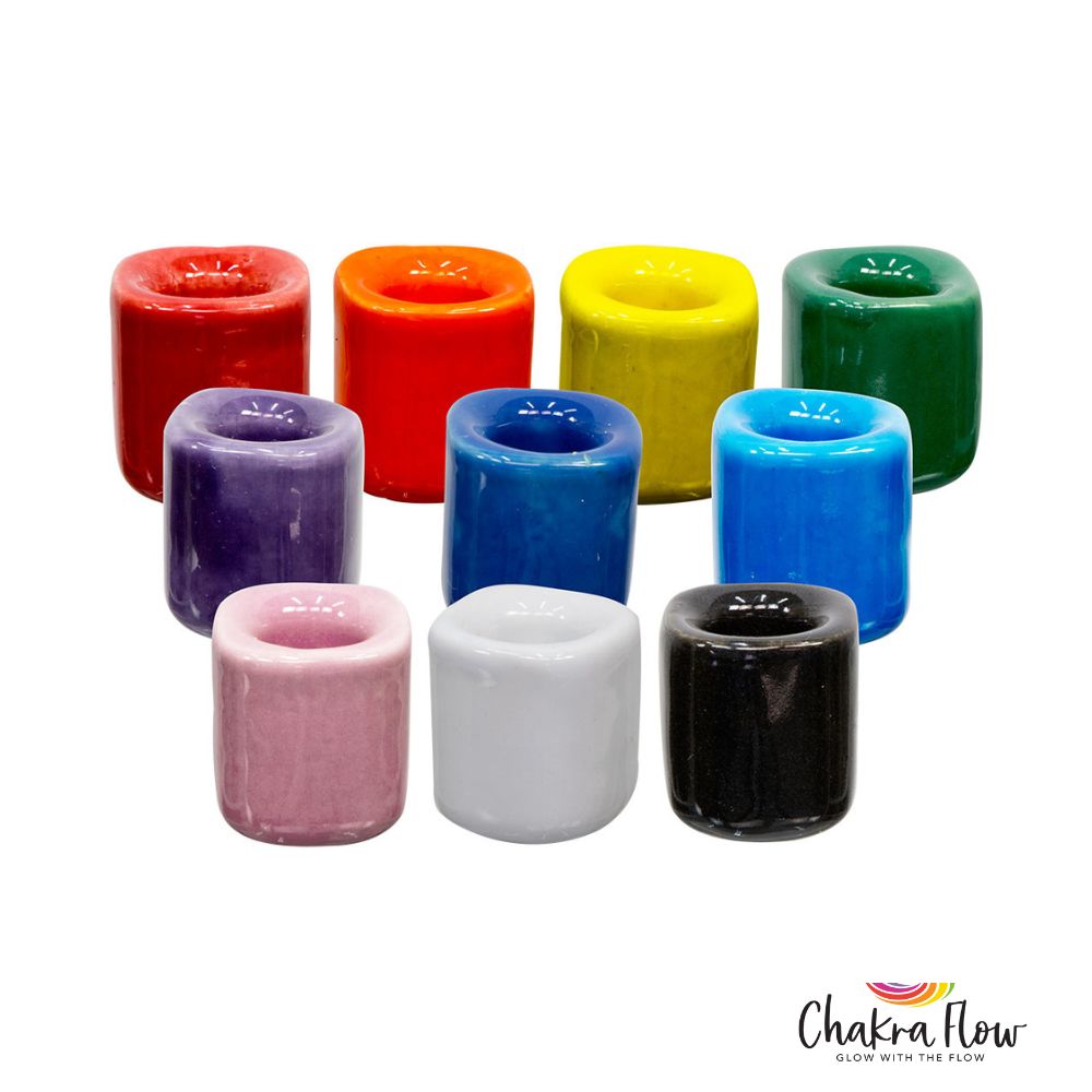Elevate your candlelit rituals with our Mini Ceramic Candle Holders, meticulously designed with lovely colors and a glossy finish. These exquisite holders come in the vibrant hues of the 7 chakras, with the added versatility of three extra colors—black, white, and brown—creating a collection of 10 delightful options.