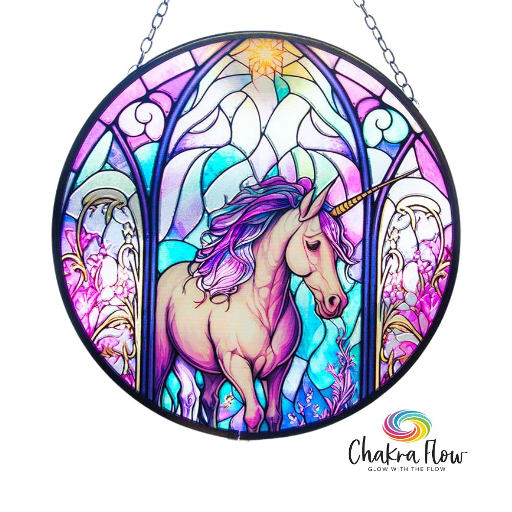 This unicorn glass suncatcher captures the mythical essence of purity, magic, and transformation. With its vibrant spring colors and enchanting design, it serves as a reminder of hope, imagination, and the extraordinary. Perfect for adding a touch of wonder to your space, it's an ideal piece for dreamers and those who believe in the power of magic.Â