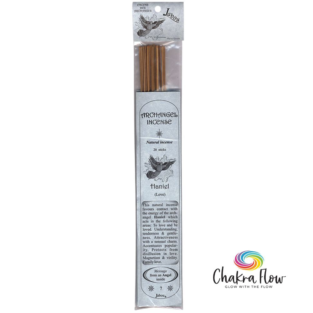 Crafted in Canada by Jabou, Archangel Incense Haniel is designed to promote love, understanding, tenderness, and gentle attraction. Each all-natural, hand-dipped incense stick is thoughtfully crafted to enhance emotional harmony and connection. Sold in packs of 20 sticks, every package includes a special Angel message, adding a meaningful touch to your spiritual practice. Made with care and precision, this incense embodies the essence of natural wellness.SYMBOL:Â Archangel Haniel is for Love.