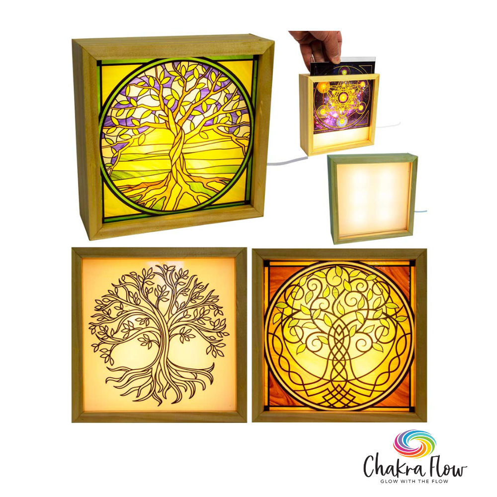 Experience the mystical radiance with our captivating Wood Frame USB LED Light, featuring a set of three glasses adorned with the sacred symbol of the Tree of Life. Measuring 6 inches in diameter, this exquisite creation blends the warmth of wooden frames with the enchanting glow of LED lights, offering a mesmerizing display of the universal symbol.