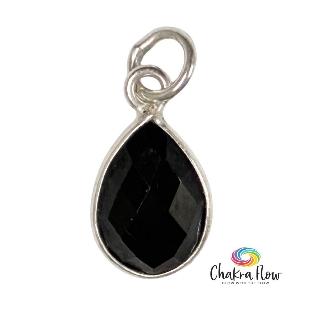 Faceted Onyx Teardrop Sterling Silver Pendant