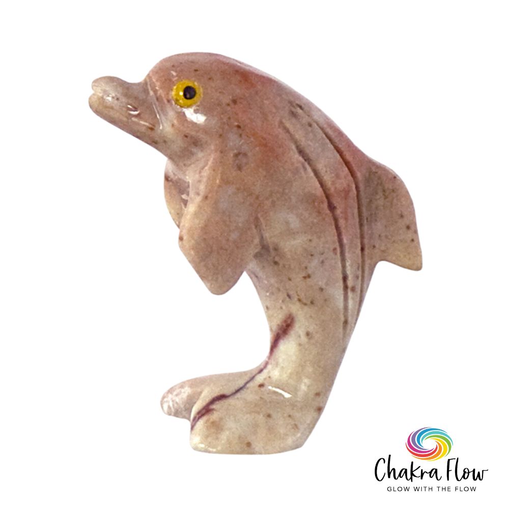 This dolomite dolphin figurine captures the grace and elegance of these majestic creatures in stunning detail. Crafted from high-quality dolomite stone, it features smooth curves and intricate sculpting, showcasing the beauty of the dolphin's form. With a sleek and polished finish, this figurine adds a touch of aquatic charm to any space. Whether displayed on a shelf, desk, or mantel, it serves as a captivating decorative accent, evoking a sense of tranquility and admiration for the wonders of the ocean.