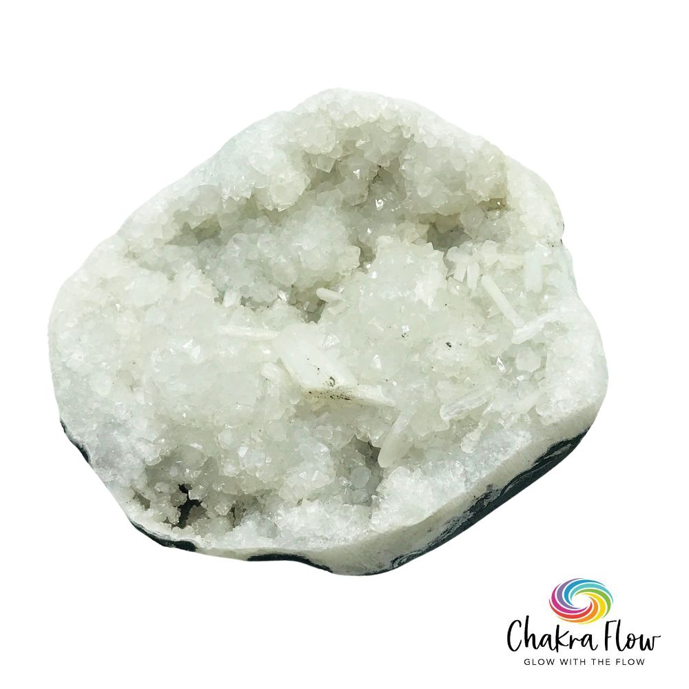 **Spiritual Growth and Higher Consciousness:** Apophyllite is associated with the crown and third eye chakras, making it ideal for enhancing spiritual awareness and connecting with higher consciousness. It helps clear mental blockages and encourages self-reflection and insight.