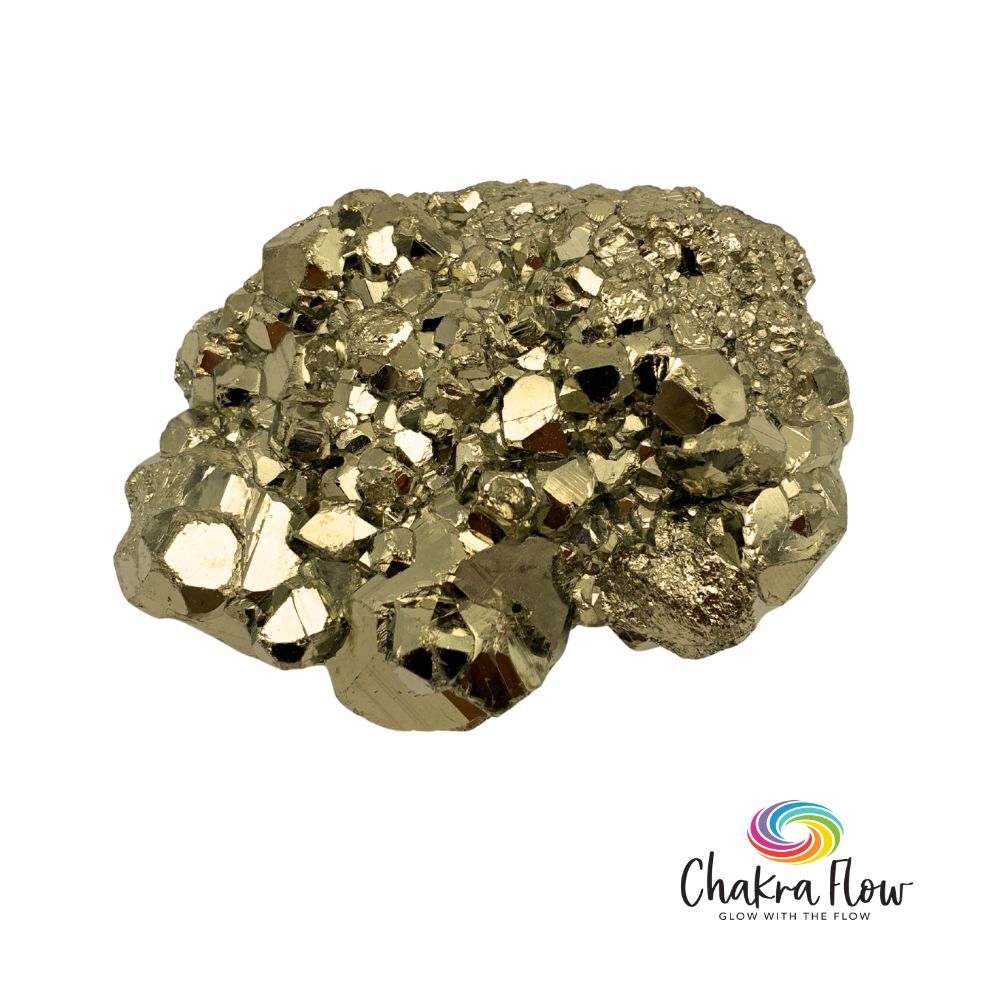Pyrite has a distinctive metallic luster that gives it a shiny, brassy appearance. It often forms cubic or pyritohedral crystals, though it can also occur as irregular masses or nodules. The color of pyrite ranges from pale yellow to golden or bronze-yellow, depending on impurities and environmental conditions during formation. Pyrite crystals may exhibit striations, stepped growth patterns, or intricate geometric shapes. When broken or scratched, pyrite may reveal a dull gray streak. Despite its nickname "fool's gold," pyrite is much harder than gold and has a cubic crystal structure, distinguishing it from the precious metal.