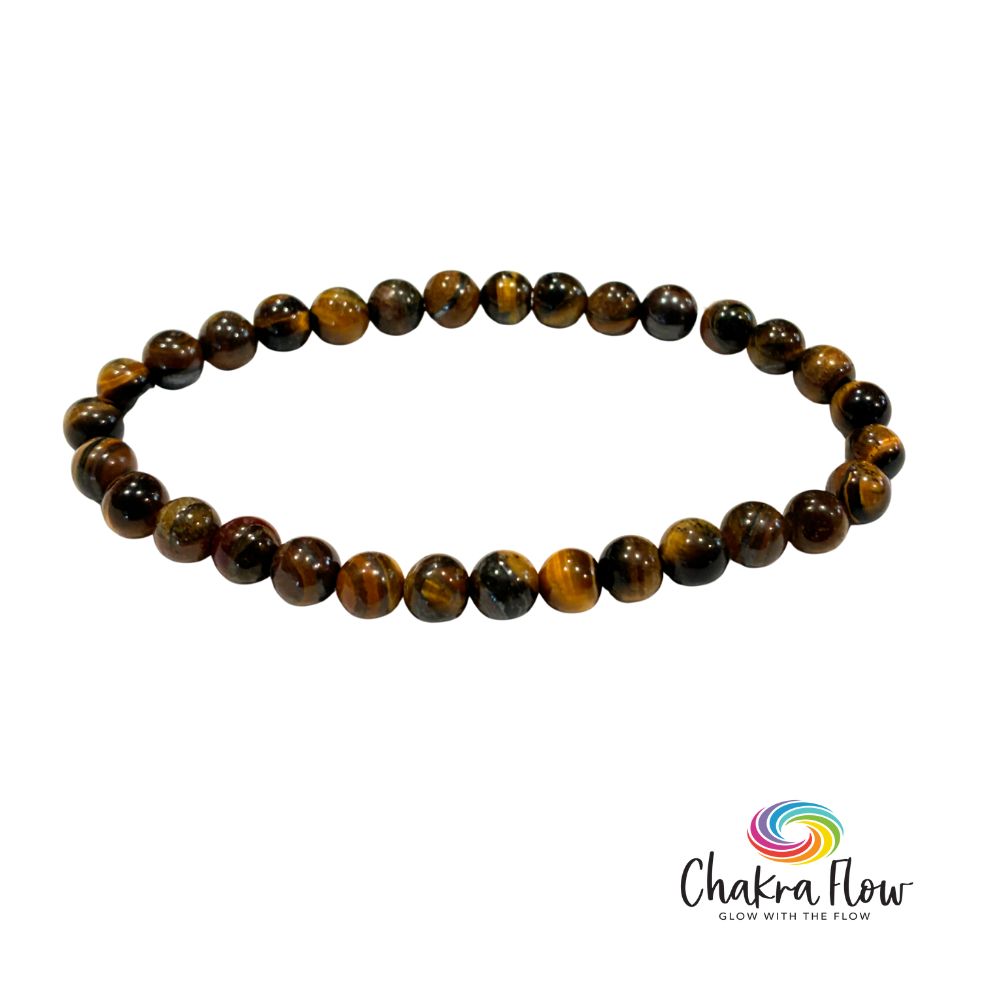 This beautiful bracelet is made of Tiger Eye beads. The largest numbers of Tiger Eye Stones are found in South Africa, but it also comes from Brazil, India, Burma, Australia and the USA. Tigers Eye’s name relates to its resemblance to the eye of a tiger or a cat. It’s colour is shimmering brown with lovely bands of yellow-golden browns through it.